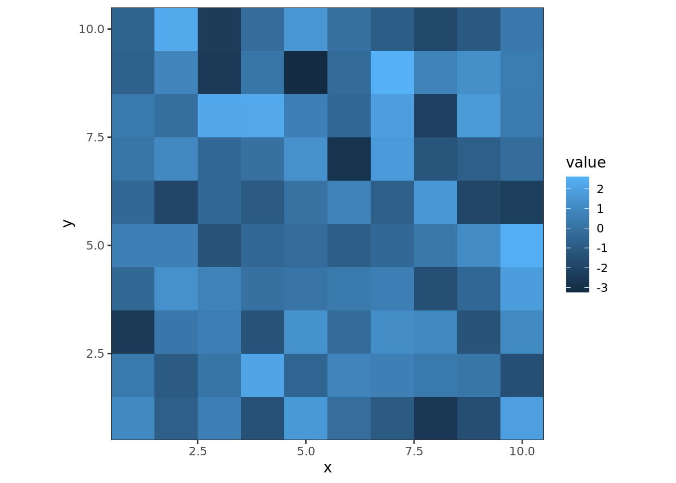 Geometries in this type of data are cells of a raster grid. Just like photos taken by digital camera, each feature in a spatial raster data set represents a cell. Position of each cell is captured in this data. Cells in a spatial raster data set have the same width and height.